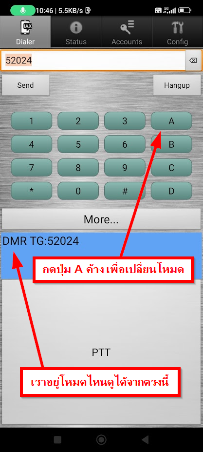 ก็สามารถเริ่มสนทนาในระบบ DMR ที่ Talkgroup นั้น ๆ ได้เลย เล่น พิมพ์ 52024 แล้วกดปุ่ม Send