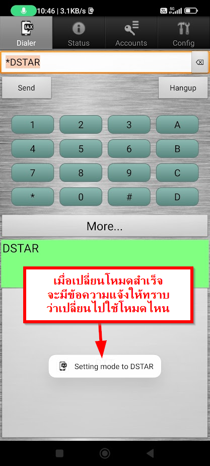 สำหรับการเปลี่ยนโหมดของระบบ Digital ของ DVSwitch Mobile จาก DSTAR เป็น DMR หรือจาก DMR กลับมาเป็น DSTAR นั้นทำได้ง่าย ๆ