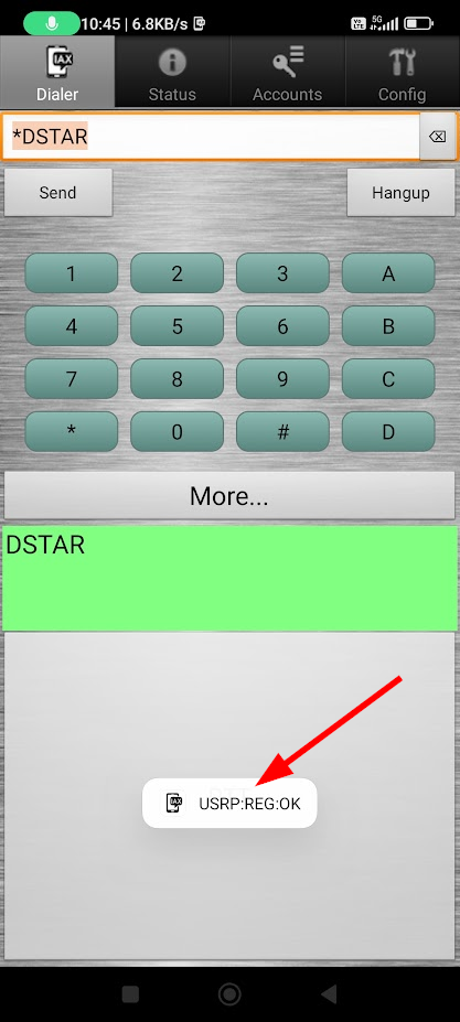หากมีการเปิดการใช้งานและหมายเลข IP ที่ใช้งานถูกต้อง เมื่อเปิด Application DVSwitch Mobile ขึ้นมาจะมีข้อความแสดงที่หน้าจอ